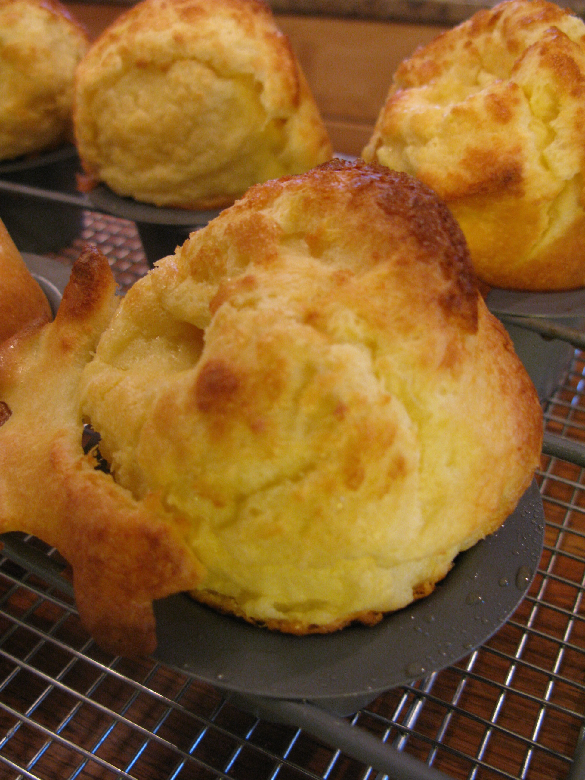 Popovers are now my favorite bread-y accompaniment to meals, especially with a hot bowl of chicken soup after a three mile walk in brisk country air.